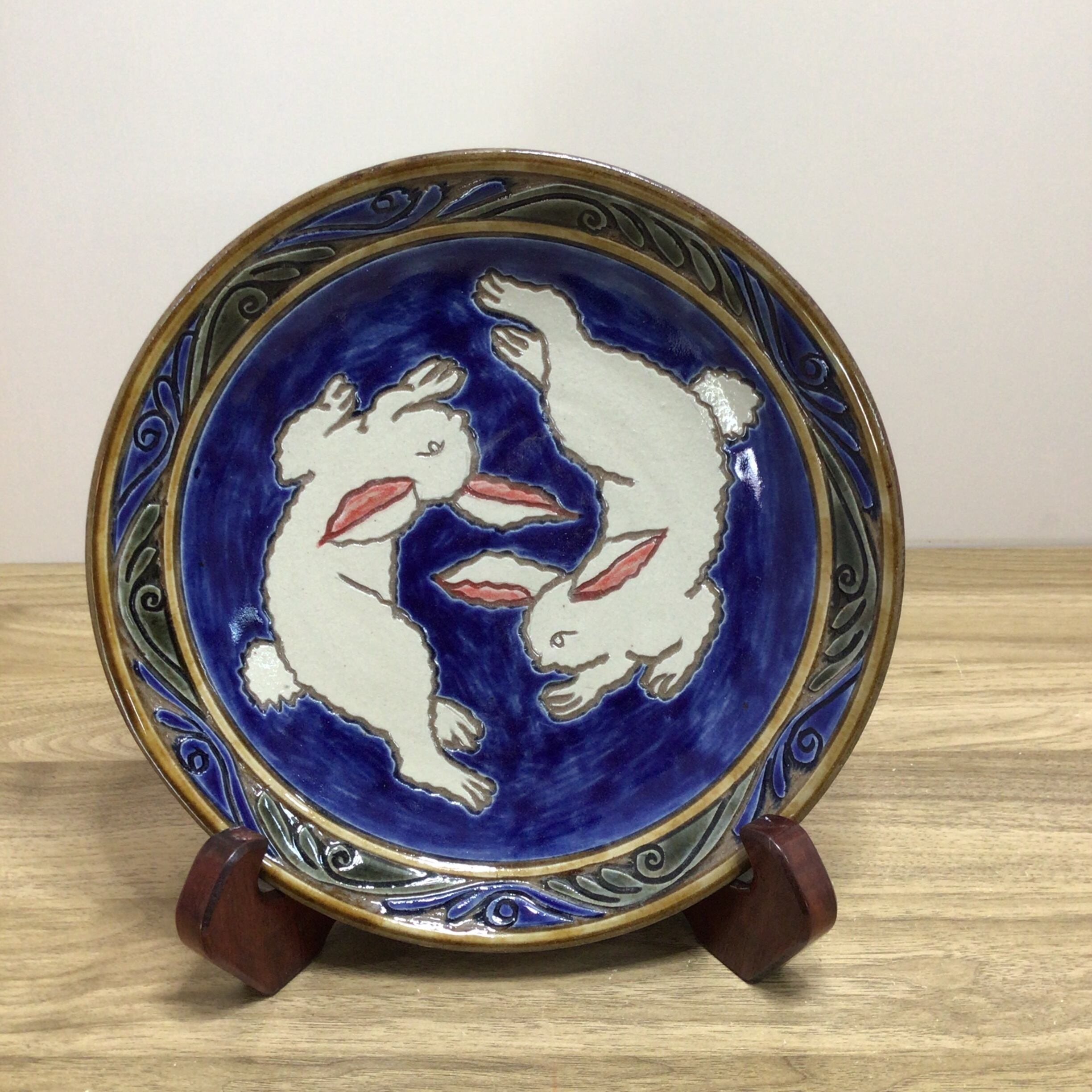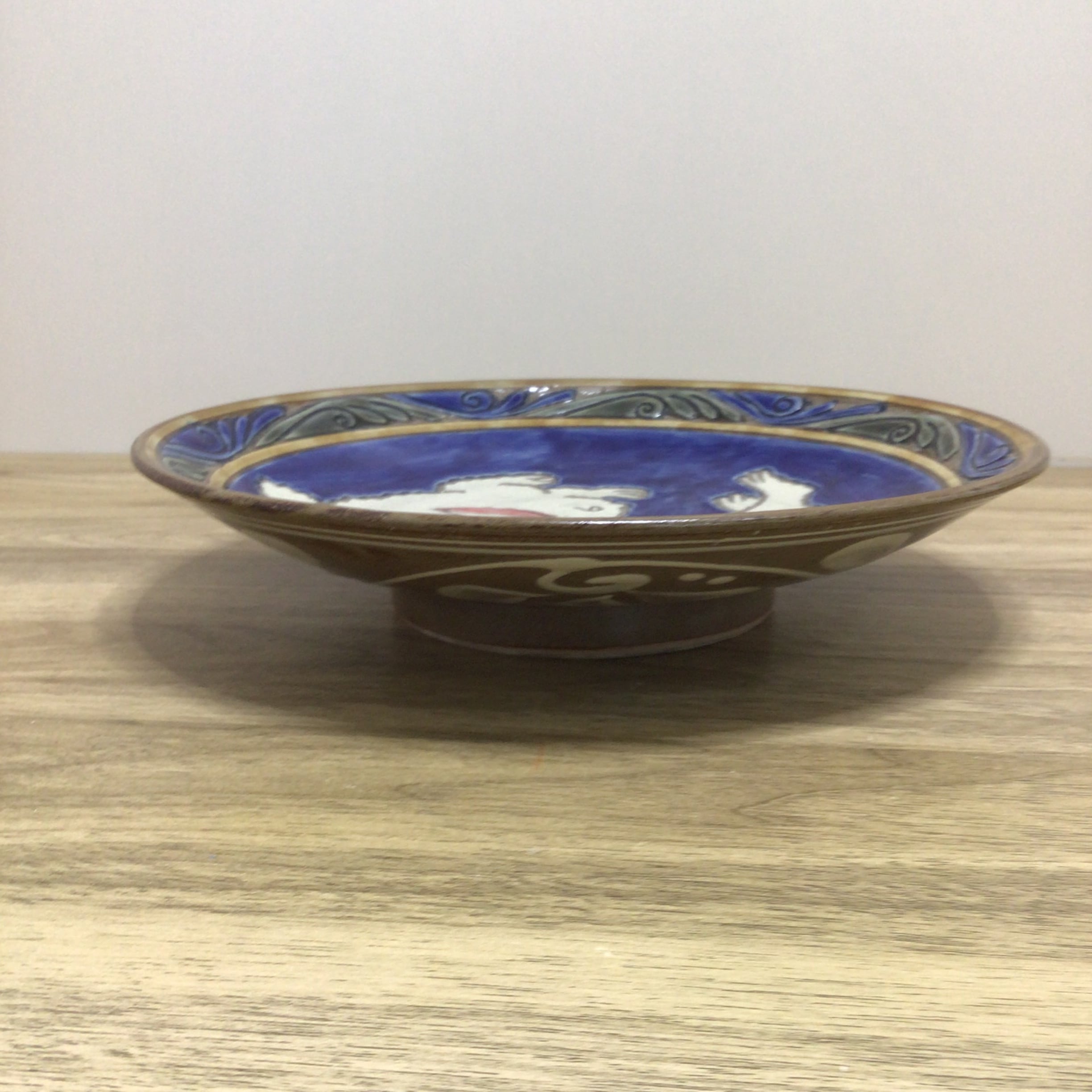 サイズ 直径 約21cm / 高さ 約4.5cm うさぎが飛び跳ねている様なお皿です。 カレーやパスタ、盛り皿としてもお使い頂けます。 また、お皿を飾ってインテリアとしても楽しめます。