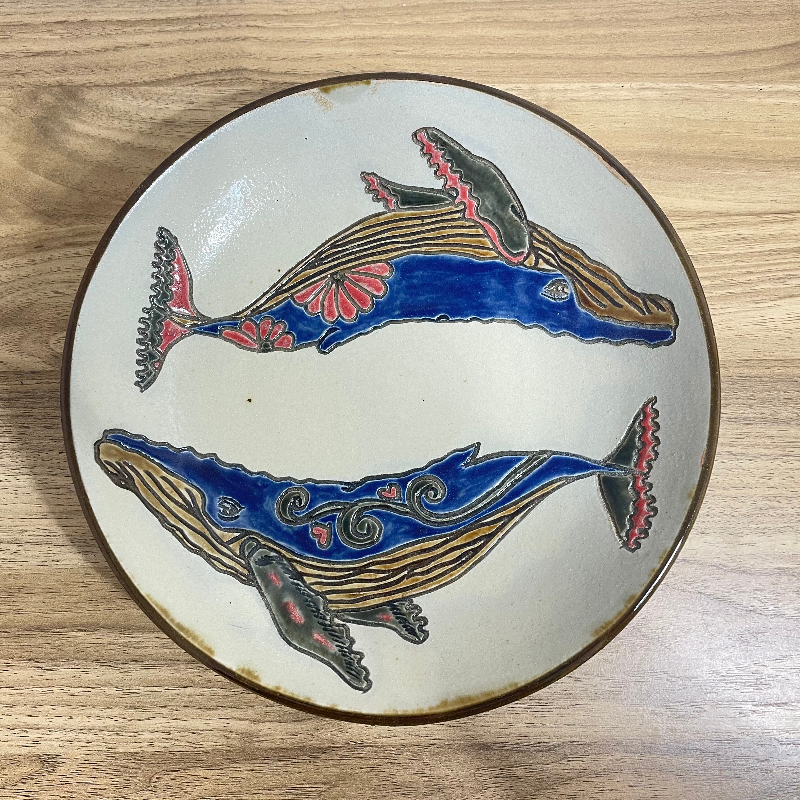 サイズ 直径 約21cm / 高さ 約5cm ちょっぴりリアルなタッチのクジラがあしらわれたお皿です。 お祝い事のプレゼントにもぴったりです。 カレーやパスタ、盛り皿としてお使い頂けます。 また、お皿を飾ってインテリアとしても楽しめます。