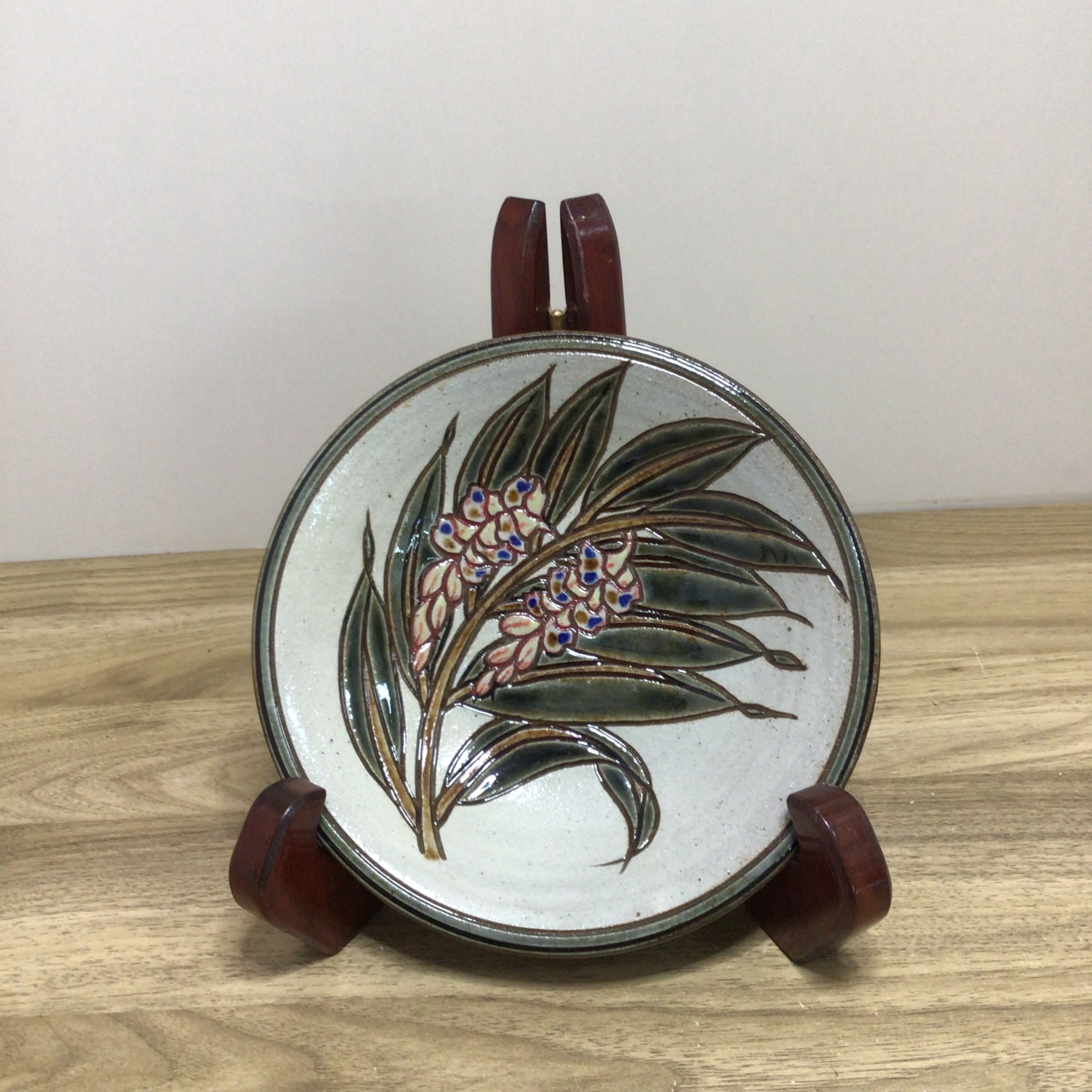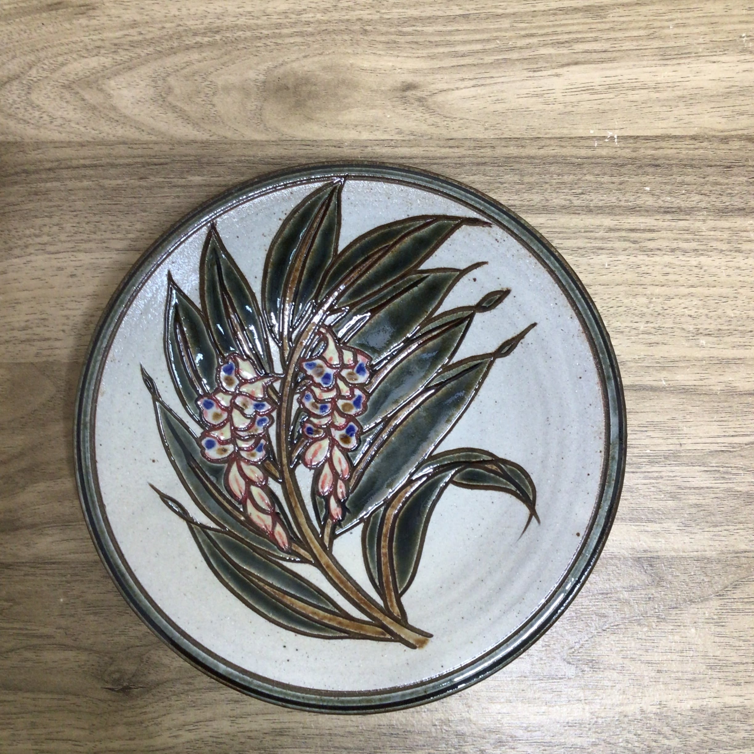 サイズ 直径 約16cm / 高さ 約3.5cm 沖縄では月桃のことをサンニンと呼び、とても親しみのある植物です。 ムーチー(餅)を月桃の葉で包んで蒸したり、料理にも使用します。 沖縄で馴染みのある月桃の花が綺麗に描かれたお皿です。 主菜の取り皿としてお使い頂けます。 ケーキやパンを載せるのにもちょうど良い為、何かと使い勝手の良いお皿です。 浅めのお皿で月桃が大きく描かれているので、インテリアとして飾るのも良いです。