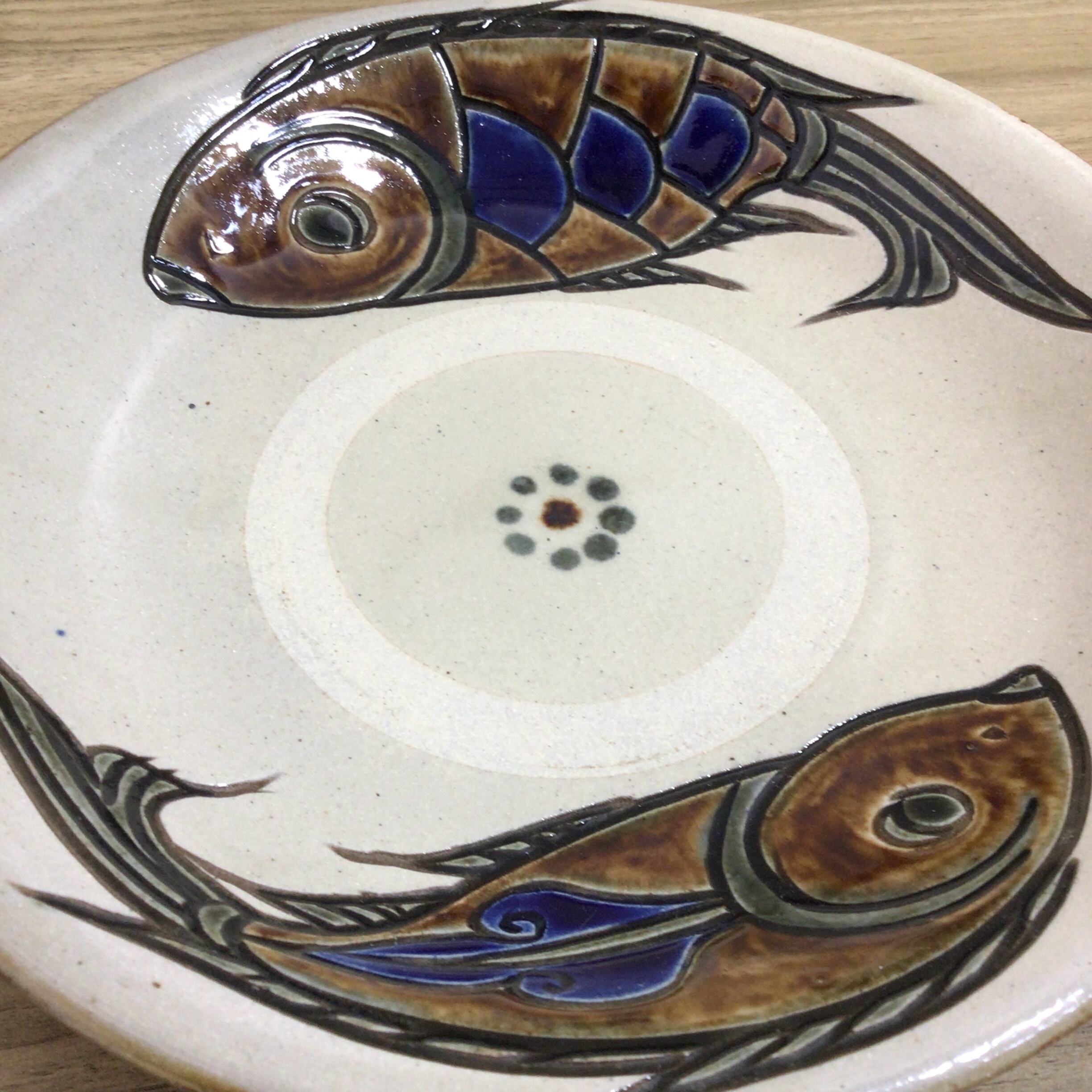 サイズ 直径 約22cm / 高さ約5cm お魚さんが向かい合って、お互いを気遣っているような、仲良しな魚二匹の柄です。 魚は卵をたくさん生むので、子孫繁栄を意味するめでたい柄です。 沖縄に伝わる定番の柄で、お祝い事のプレゼントにもぴったりです。 カレーライス、スパゲッティなどに最適です。 少し深めになっているので煮物などに盛り付けても良いと思います。