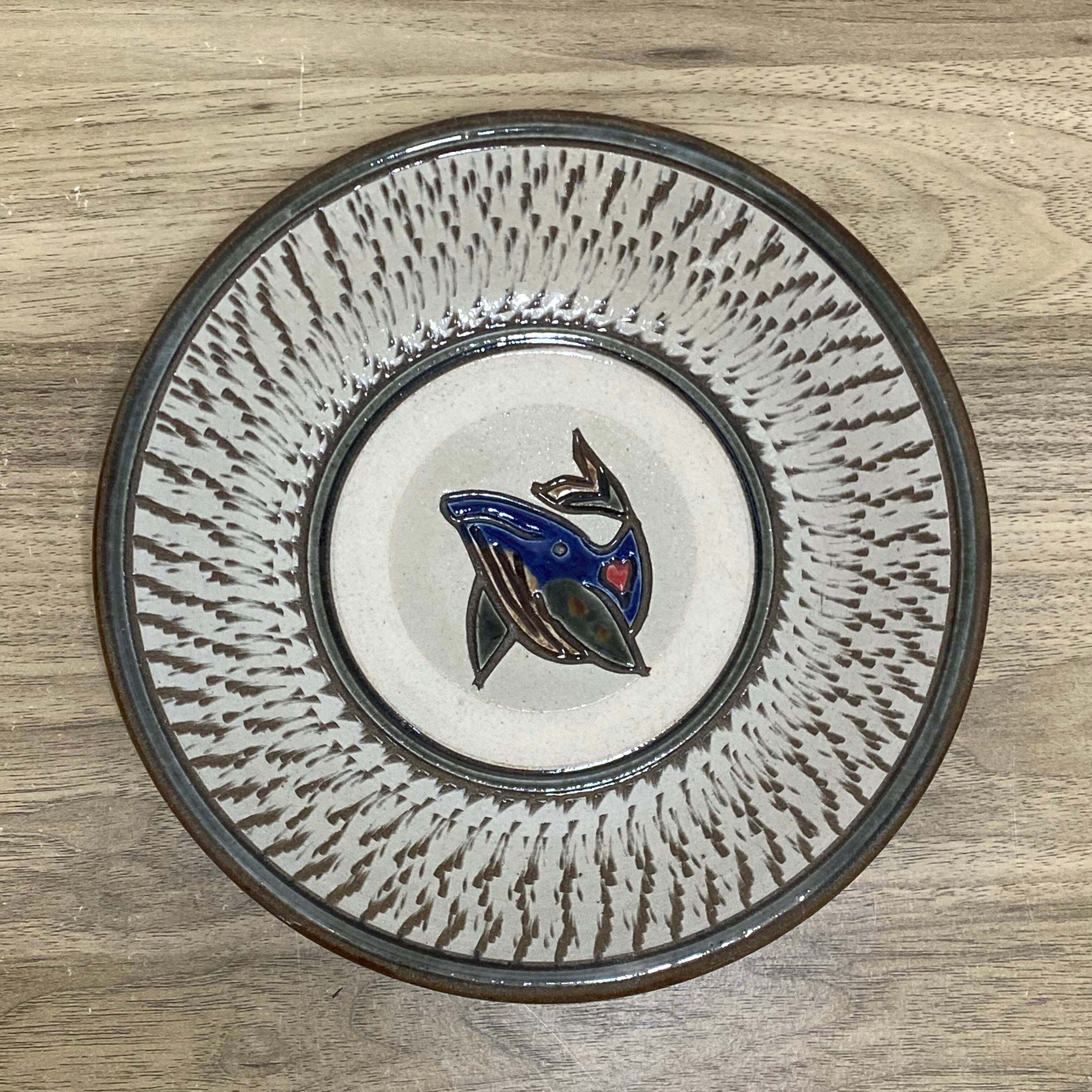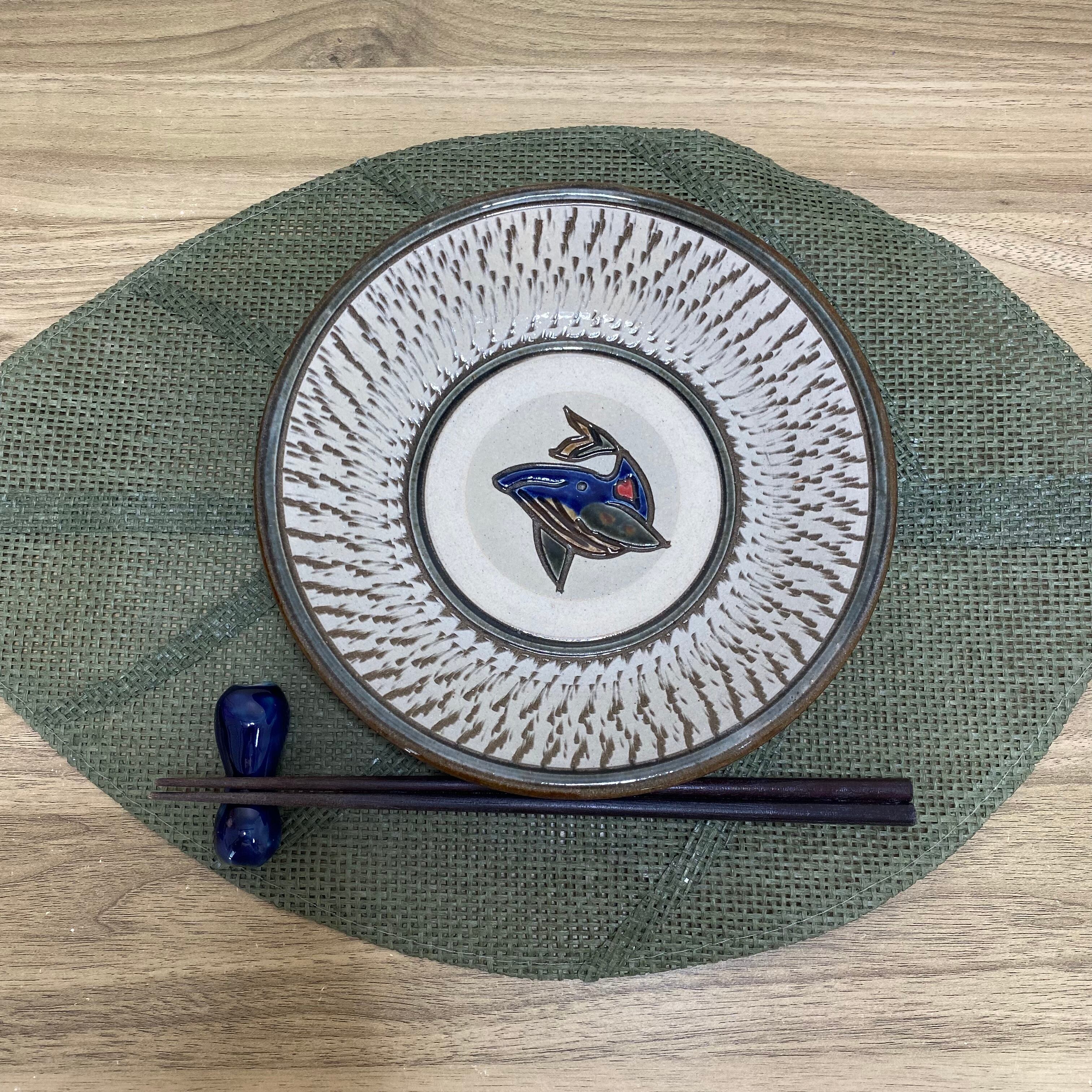 サイズ 直径 約18cm / 高さ 約4.5cm 周りに飛びカンナをあしらった後、中にクジラを彫りました。 少し大きめな取り皿で、主菜を盛り付けても良しです。 また、食パンが1枚ちょうど良く入る大きさのお皿です。 少し深さもあるので、汁気のある料理も盛り付けられます。
