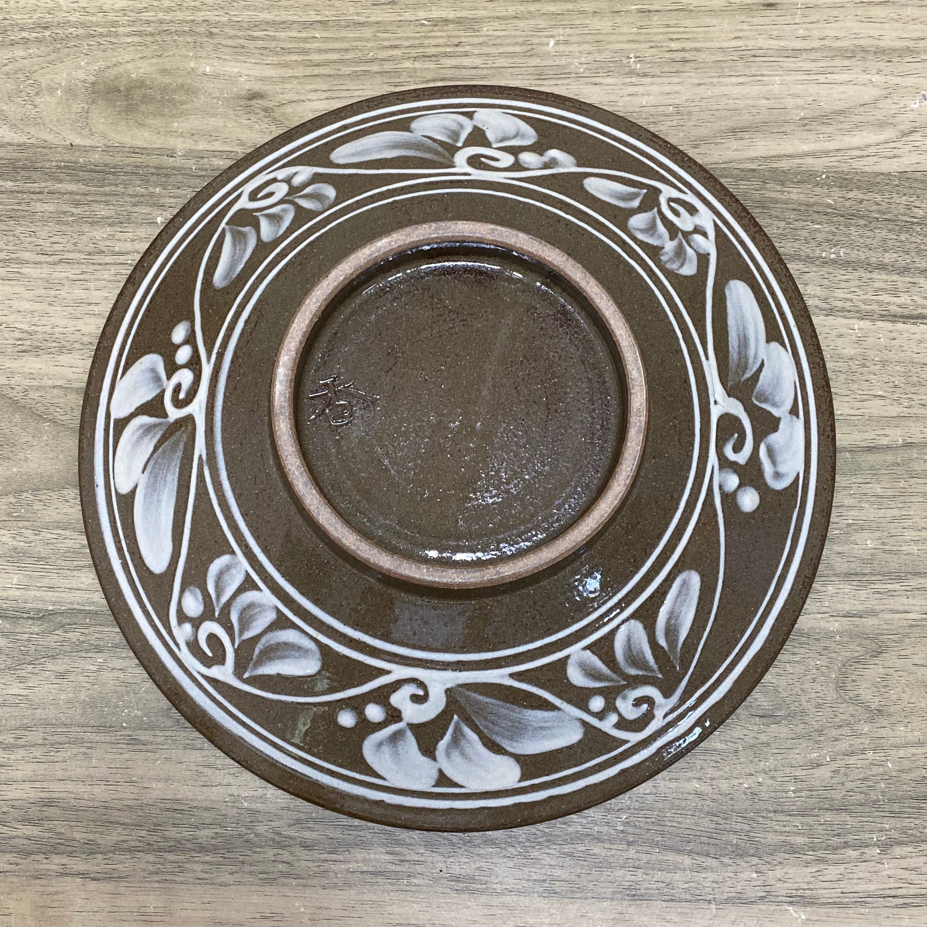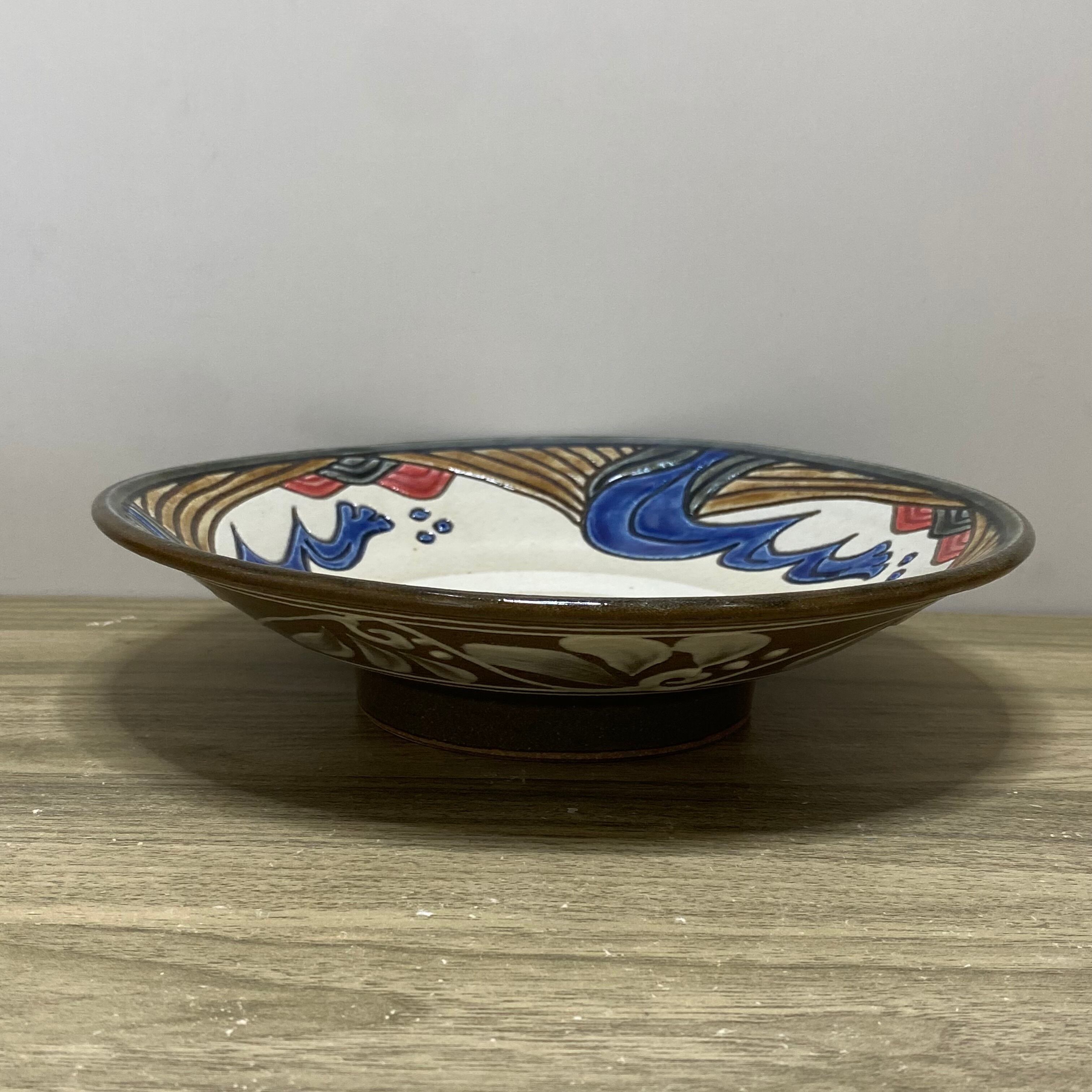 サイズ 直径 約21cm / 高さ 約5.5cm 沖縄の海の中を泳ぐジンベイのデザインのお皿です。 また、外側はイッチンでやちむんの風合いが楽しめます。 カレーやパスタ、盛り皿としてお使い頂けます。 また、お皿を飾ってインテリアとしても楽しめます。