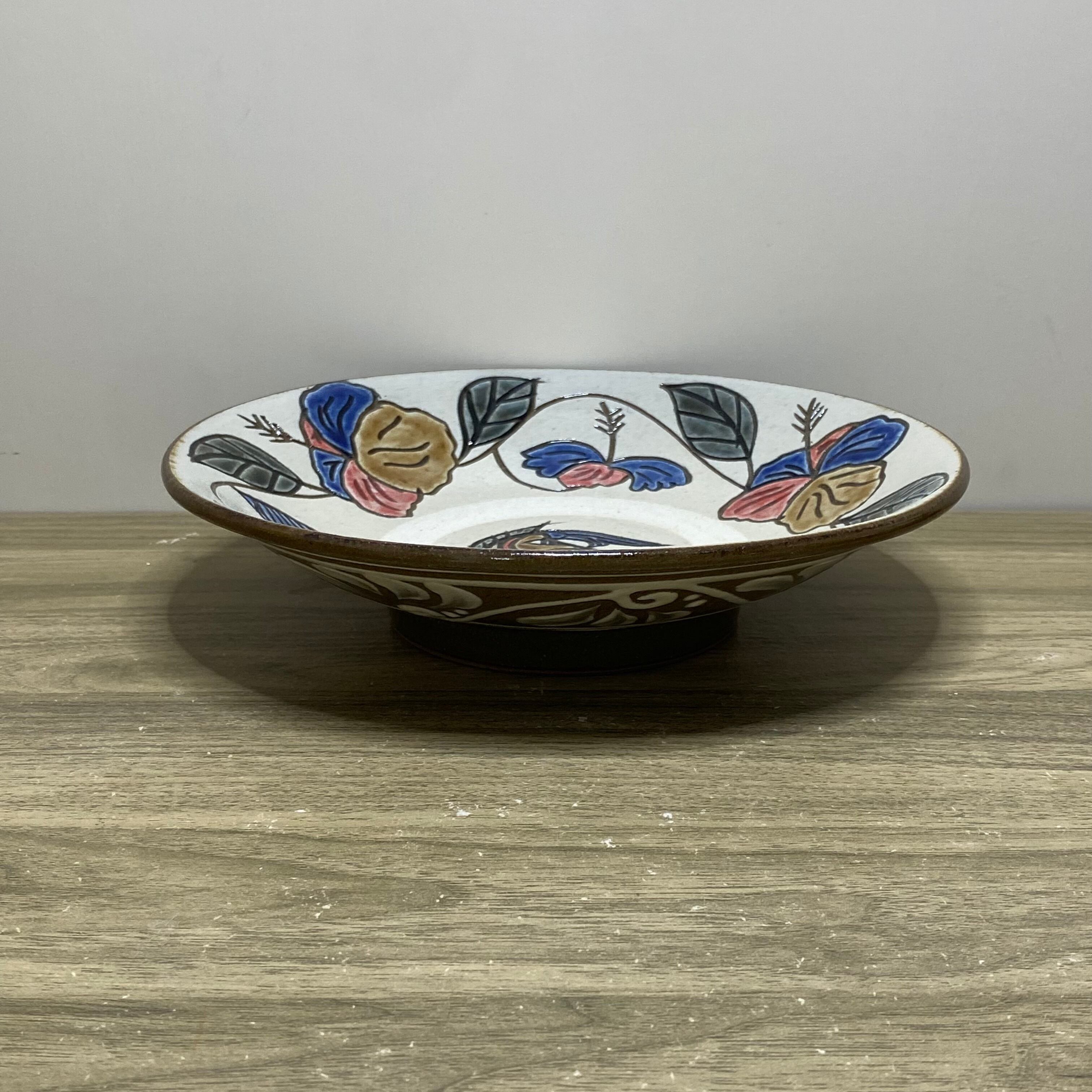 サイズ 直径 約21cm / 高さ 約5.5cm 外側はイッチンでやちむんの風合いが楽しめ、内側はハイビスカスとサカナで沖縄らしさが楽しめるお皿です。 カレーやパスタ、盛り皿としてお使い頂けます。 また、お皿を飾ってインテリアとしても楽しめます。