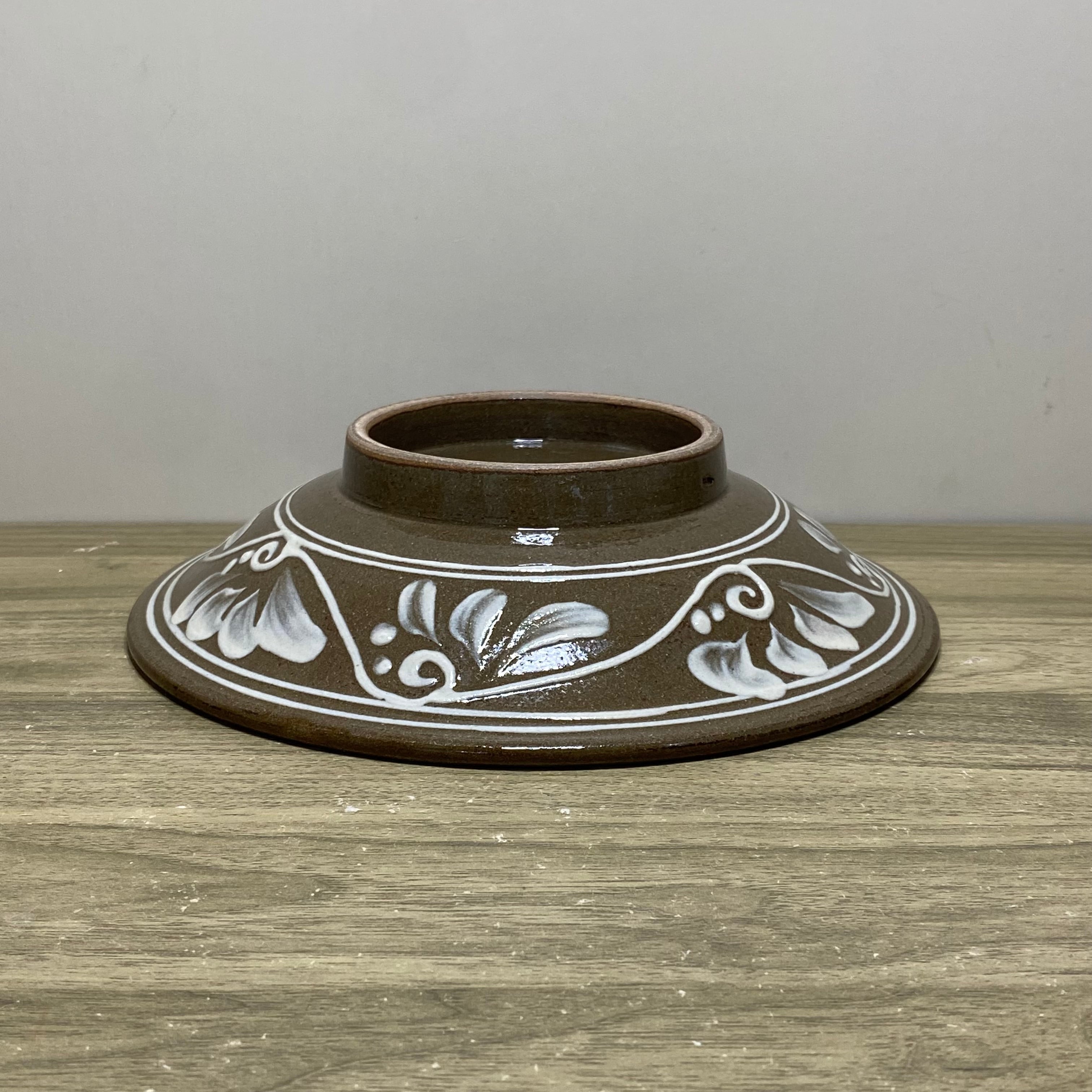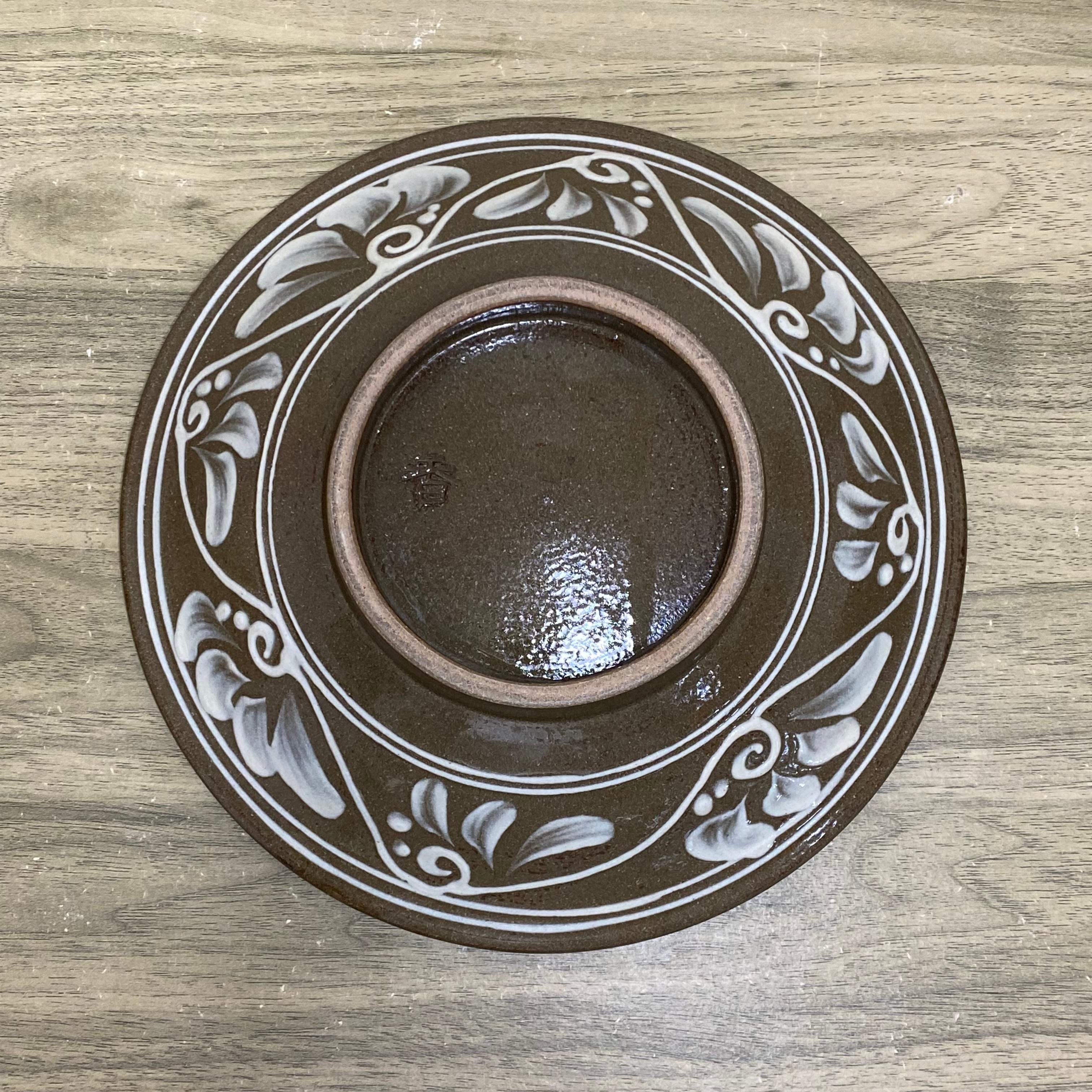 外側はイッチンでやちむんの風合いが楽しめ、内側はハイビスカスとカメで沖縄らしさが楽しめるお皿です。